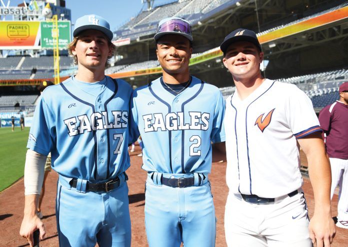Home run derby participants included, from left, Granite Hills’ Tommy Entrekin and Brenden Lewis and Valhalla’s Mace Wheeler.