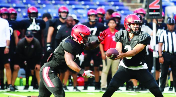 San Diego County prep alumni once again stood tall on the field for the San Diego State University football team as the Aztecs defeated host Utah State, 38-7, last Saturday to improve to 2-0 on the young season and, in the process, remain in the chase for a berth in December’s Mountain West Conference championship game.
