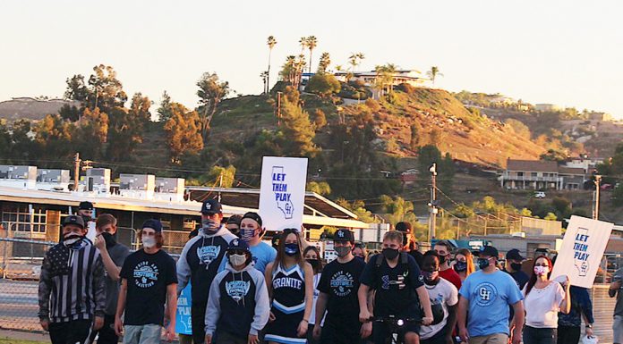 Hundreds of East county students gathered in front of Granite Hills High School on Friday evening, dressed in school colors and gathered with teammates.