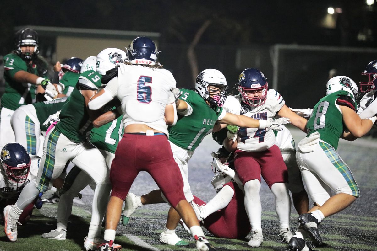 With all the offense on the gridiron, there were some key defensive plays. Senior Tyree Zarkarayn led Steele with 10 tackles, including eight unassisted stops, while Davis had seven tackles for Helix, including two for losses and one sack. Junior Dean Niumata had one fumble recovery for the hosts.